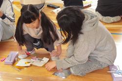 展覧会に向けて、各学年の共同作品の制作が進んでいます。1年生の「キラキラだいさくせん」は体育館にビニールを広げ、飾りつけを6年生がサポートしています。「星のつくり方おしえて」と1年生が聞くと、6年生は「ここをこうやって折って・・。」と優しくお手本を見せてくれます。6年生の表情が普段教室で見ている時より柔らかく見えるのは、きっと1年生への「思いやり」が現れているからなのでしょう。1年生も6年生も真剣に仲良く取り組んだ作品の完成が楽しみです。