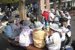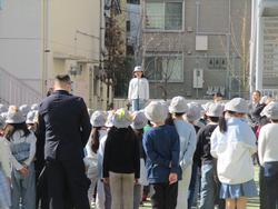 今日は2年生が小石川後楽園へ校外学習に出かけました。「植物や生き物を観察し、自然を楽しむ。」「後楽園の良さを知る」というめあてで、園内の生き物、植物、花、丸いもの、四角いもの、赤いものを探しながら散策しました。子供たちは、琵琶湖に見立てた大泉水を眺めては「きれいだねー」「鳥がいるよ」と目を輝かせていました。学校では中休みの時間に今年度最後の避難訓練を行っていました。2年生は集合写真を撮ったあと、校長の「東日本大震災」や「命を守ること」について講話を聞き、校外近隣にいる時の発災時は、学校まで戻ってお迎えを待つことを確認しました。