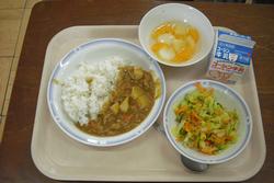 今日から各教室での生活がスタートしました。2年生以上は学級でのルールや使う場所の確認、自己紹介等あっという間に午前中の時間が過ぎていきました。1年生は、靴箱の使い方や、教室での話の聞き方、机の中の道具箱の整理等一つ一つ確かめながら覚えていきます。そして午前中で下校となりました。声をかけると、「また明日!さようなら。」と笑顔で答えてくれる子がたくさんいて安心しました。2年生以上は今日から給食が始まりました。新しい学級での給食準備はどの教室も上手にできました。今年度は「米粉ポークカレー、フレンチサラダ、いちご、牛乳」の献立でスタートです。調理員のみなさん、今年度もよろしくお願いします。