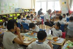「ふれあい給食」では、1・2年生と一緒の教室で給食の試食をしていただきました。その後の会では「もっと時間があればじっくりむかしあそびを教えてあげられたのに。」「給食はとてもおいしかった。」「子供たちと楽しく過ごせて、あっという間だった。」など、たくさんの感想をいただきました。
