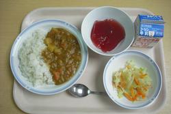 今朝は抜けるような青空の下、礫川公園の木々の葉がきれいに色づいていました。秋が深まる今週の礫川小学校は「展覧会」「マーチング」と、芸術の秋一色ですが、そこにもう一つ「読書の秋」が加わります。今月の給食は秋の読書週間にちなんで「おはなし給食」という、本に登場するメニューが献立が登場します。栄養士と図書館専門員がアイデアを出し合い、物語と献立がコラボレーションしています。今日の献立は「ひみつのカレーライス」。礫川小学校のカレーライスは、給食室自慢のスパイシーでコクがある、とてもおいしい一品です。さて、この物語は・・。ぜひ各ご家庭でも話題にしてほしい一冊です。