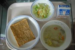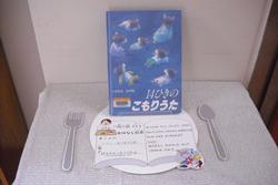 「読書の秋」11月は、給食に「おはなし給食」という本にちなんだ献立が何日かありました。最終日の今日は、「シチューのこもりうた」さて、どんなおはなしなのでしょう。シチューはホワイトシチューで、きのこやジャガイモがとてもおいしく、温まりました。