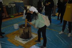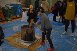 今日は「礫川おやじの会」主催の「餅つき大会」が開催されました。おやじの会の皆さんや地域の方々が、朝早くからお米の準備をしたり、会場の準備をしたり、外での米を蒸す作業、ついたお餅を一口大に丸めて味付けをする作業に活躍されていました。11時30分に開会し、子供たちはそれぞれ餅つき体験をしました。応援に来た先生方も餅つきに参加しました。一通り体験ができると、いよいよお餅をいただく時間です。子供たちは笑顔で「おいしい」「何個食べようか」と喜んでいました。礫川小学校の子供たちは地域の皆さんの力に支えられてすくすくと育っています。おいしいお餅、ごちそうさまでした!