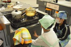 家庭科室では5年生が味噌汁とご飯の調理実習をしていました。材料を切り、米を研ぎ、ガス栓をひねって火をつけ調理する。一連の行程をご家庭で経験することは、最近は少ないのではないのでしょうか。子供たちは真剣に火の様子を見て調理していました。お手伝いをしてくださったボランティアのみな様ありがとうございました。午後は校内研究授業がありました。1年生の体育科「表現リズム遊び」の単元「ようこそ、いきものランドへ!」という学習内容でした。子供たちは「ペンギン」「イルカ」「魚」になりきり、体全体を使って表現していました。友達の表現をタブレットで撮影し、アドバイスして更に楽しい動きになっていました。