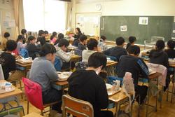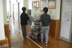今学期の給食もあと2回となりました。今日の献立は「ココア揚げパン」です。子供たちからは「おいしい」の声が多く聞こえ、おかわりジャンケンも盛り上がっていました。各教室をのぞくと、中学年のクラスは「あ、校長先生!」とニコニコ声をかけてくれます。高学年はさすが!落ち着いています。しっかり食べて片付けもきちんとできました。そしてワゴンを運んで行った給食エレベーターの前で「おいしい給食、ごちそうさまでした!」とお礼を言って帰ります。調理員さんに聞こえているとよいですね。