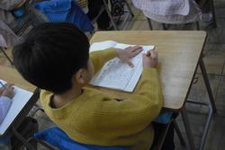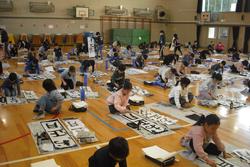 今日は1・2時間目に3年生が、3・4時間目に4年生が体育館で書初めを行いました。どちらの学年も床に新聞紙を敷き、その上に書初め用半紙を広げ、大筆で一文字一文字大きく丁寧に書いていました。体育館には墨汁の香りが漂い、静粛な空気に包まれていました。1・2年生は硬筆の書初めを各教室でそれぞれの時間割で行います。今日は2年生が取り組んでいました。お手本をじっくり見て、書き方のコツを捉え、こちらも一文字一文字丁寧に書いていきます。