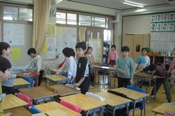 今日は夜から雪が降るかもしれないという予報でしたが、午前中は晴天で気持ち良い空が広がっていました。今日は3年生と一緒に教室の清掃をしました。窓を開け、空気を入れ替えながら、黒板をきれいにする係、床をぞうきんがけする係、ほうきで床を掃く係、それぞれ熱心に仕事をしていました。机はみんなで運んでいました。きれいな教室は気持ちよく学習ができ、感染症予防にもなります。