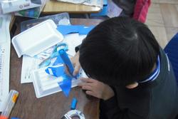 昨日とは一転、今日は寒い一日となりました。でも、教室は子供たちの熱気でぽかぽかです。5年生は国語の説明文「まんがの方法」で筆者の考えを読み取る学習を進めています。5年生の理科では「電磁石の性質」を磁力で動く車で実験・実証していきます。1年生の教室では、図工「ふわっ ふわっ ゴー!」の作品作りをしていました。スチレン容器を好きな形に切って、好きな色の折り紙やペンで色付けしていきます。さて、どんな作品になるのでしょうか。