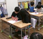2年生は1年生と一緒に協力し合い、文字の色を塗ったり、練習をしたりして、