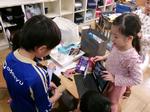 友達の作品を見て、今度作ってみたいな、一緒に遊びたいなと、感想を伝え合っていました。