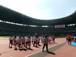 17日(火)に、世界陸上リアル教室に参加しました。東京で34年ぶりに開催される「世界陸上競技選手権大会」を機に、実際の会場で”本物”の雰囲気を体験しながら、体を動かしました。