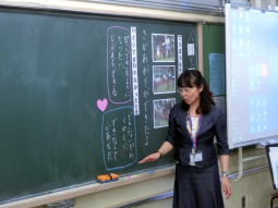 子供たちは紙芝居を見ながら、教材文を理解し、学習に取り組みました。どの発問に対しても、子供たちは意欲的に手を挙げて、自分の考えを伝えようとしていました。また、ワークシートにも自分の意見をたくさん書いて考えを深める姿が見られました。
