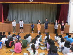 今日は、3年生と4年生を対象に、「久保庭朗読劇場」が行われました。3年生は、「いとしの犬 ハチ」「おにぎりぱくりん」、そして、4年生は「セロ弾きのゴーシュ」です。3年生も4年生も、毎年、恒例の朗読劇場ですので、お話を聞く心構えはバッチリ。「いとしの犬 ハチ」では、涙ぐむ子供たちも。子供たちの心に残る朗読劇場になりました。「久保庭朗読劇場」のみなさん、毎年、ありがとうございます。