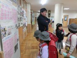 いよいよ2学期もあと8日となった今日。6年生の旗当番が校旗と区旗を揚げ1日が始まりました。今日の当番さんは、8時20分に登校してすぐに揚げてくれました。ありがとう。校舎内では、3年生の子供たちが、社会科の学習で、校舎内の消防設備を探しながら班活動をしていました。職員室前の「消火栓」には、扉の中はどうなっているのか、興味津々で子供たちが見ていました。