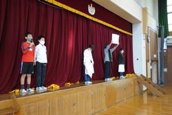 <6年児童代表の言葉>今日は、たくさんの応援をいただきありがとうございました。このコロナ禍の中、ぼくたち6年生にとって、無事に最後の運動会を行うことができたのは、先生方や保護者の方、下級生のみなさんのおかげです。僕たち6年生にとって、最後の運動会は、フラッグを使った動きやダイナミック琉球のダンスの表現をただ踊るだけではなく、体全体を使い、指先まで意識し気持ちを込めて演じることに努めました。演技だけではなく、運動会を運営する係の役割でも最高学年として団結して頑張りました。今回の運動会は、いろいろな思いを込めた僕たち6年生にとって最後の運動会となりました。この思いを胸に残りの学校生活を関口台町小学校の先生方や仲間たちと過ごしていきたいと思います。最後になりますが、本日は、ご観覧、ご声援、ありがとうございました。関口台町小学校の皆さん、本当にお疲れさまでした。