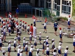 来週の運動会に向けて、今日は1回目の全校練習。入場行進と開会式の練習をしました。特に今年は、第1部(1年生から3年生)と第2部(4年生から6年生)に分けて実施することと、行進の時間を短縮するため、入場行進のやり方を変えました。これまでは6年生の鼓笛隊を先頭に、校庭のトラックの上を1年生から順番に5年生までが行進して入場していました。しかし、今年は、児童席の前に学年ごとに並んで、全員が前に行進して整列するといった具合です。新たな入場行進に取り組む子供たち、今日は頑張りました。