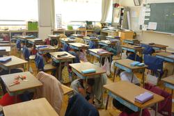 今日は予告なしの避難訓練。しかも、午前8時40分に地震が発生したという想定。授業は始まったけれど、まだ朝の子供たちのエンジンがかからない状況下での「訓練!訓練!避難訓練」のサイレンとアナウンス。でも、すぐに机の下にもぐり、校庭への避難のためにヘルメットを被る姿は、素早くて見事でした。「命に関わることは、いつも真剣に」が関台っ子の行動指針の一つです。