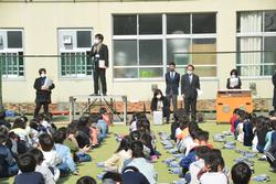 10月から3年生が種から大切に育ててきた花苗。暖かい日が続いたおかげで少しずつ花が咲き始めました。そんな花々をより多くの見てもらおうと、礫川公園に植えることとなりました。実際に植え替えてくれるのは区のみどり公園課の方々のため、その贈呈式を玄関ホールで行いました。代表児童が自分たちがどのような思いで育てたかを伝え、苗を贈呈しました。その後、みどり公園課の方よりお礼の言葉と植える場所についての説明がありました。区役所やドームシティなどに行く際には、ぜひ礫川公園にも足を運んでみてください。以下に代表児童の言葉を掲載します。