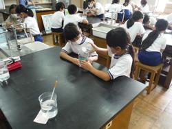 私たちの生活にとって欠かすことができない水。それは地球上の全ての生き物にとっても同じこと。だから水を大切に使って環境に負担を掛けないように排水しなくてはならない。そのようなことを4年生の皆さんは考えさせられました。9月10日(金)の3校時に4年1組が、4校時に4年2組が、理科室で東京都下水道局の方々のお話を聞いたり、実験をしたりしながら、下水道の仕組みや、水再生センターの役割、油をそのまま排水した場合に起こるリスクなどについて学びました。実験では、泥水の沈殿の様子と、トイレットペーパーとティッシュペーパーの溶け方の違いを観察しました。これらを通して、4年生一人一人が水を排水する際にどのような点について気を付けたいかなどを考え、みんなが下水道マイスターに認定されました。ご家庭でも環境に優しい排水の仕方について、今日認定されたマイスターさんからお話を聞いてみてください。