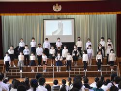 ○5年生 歌唱「この地球のどこかで」 演奏「ルパンⅢ世のテーマ」 今年のテーマは「団結・努力」。合奏「ルパンⅢ世のテーマ」では、自分たちが目指すべきゴールを達成できるようにリコーダーや楽器の練習で「努力」を積み重ねました。間奏の個人演奏も魅力の一つでした。合唱「この地球のどこかで」では、歌詞の意味を読み深め、互いの歌声を聴き合い、美しいハーモニーで歌えるようにし、関台小5年生にしかできない歌を創り上げました。大切な仲間と「団結」して創り上げた2曲でした。 |