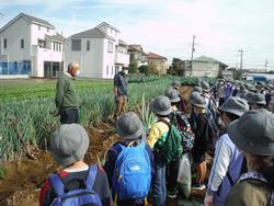 今日は4年生が、練馬区の高橋農園での自然体験教室に出かけました。やはり心配だったのが天候です。予報が毎日のように変わってひやひやしましたが、当日は青空も見える清々しい天候になりました。学校からバスで1時間足らずで農園へ。バスを降りると周りにビルはなく、畑が広がります。「同じ東京23区内なのに景色が違う」「なんとなく空気がおいしい」などの声が子供たちからは聞かれました。記念写真を撮り、農園の方の話を聞いた後、この日は大根1本とねぎ2本の収穫体験をさせていただきました。大根やねぎをぬくときに音がすること、大根が大きくてなかなかぬけなかったことなど、ふだんはできない体験ができました。また、土の栄養が行き渡るように大根は1週間ずつ分けて植えること、大根の種が青くてとても小さいこと、ここまで大きく育てるには農園の方のたくさんの苦労があることなどたくさんのことを学びました。収穫した大根とねぎは、各ご家庭でどのように味わったのでしょうか。きっと農園の方への感謝の気持ちをもって、おいしくいただいたことでしょう。