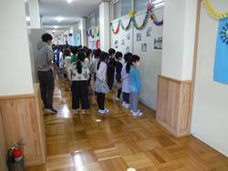 ここ数日、朝晩の冷え込みが厳しくなり始め、風も強く空気も乾燥してきました。暖房に頼る時期になり、火災に対しても用心しなくてはいけません。そのような折、校内ではなく近隣で学校に火が燃え移りそうな火災が起きたらどうしたらよいのかを考える機会とするため、学校外に避難(二次避難)する訓練を行いました。今日は、江戸川公園方面の住宅が激しく延焼し、学校も安全ではないという想定で、東京カテドラル聖マリア大聖堂まで避難しました。いつも以上に長い距離を移動することとなり、しかも久しぶりに教室外への避難を伴う訓練でしたが、子供たちは「お・か・し・も」をしっかり守り、往復とも落ち着いて行動できました。さすがは関台っこ!素晴らしい態度で訓練に臨めました。今後も火災規模や出火場所を考慮しながら、訓練を実施していきたいと思います。