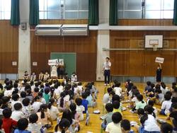 校長の佐藤です。今日で1学期終了です。1校時に体育館で、終業式をしました。私からは1学期に頑張ったこと、できるようになったことを振り返ること、夏休みには何か1つでもいいからふだんではきないことに挑戦してほしいこと、事故などに遭わずに9月1日に元気に登校してほしいことをお話しました。5年の代表児童は、1学期に頑張ったことを3つ紹介してくれました。特に八ヶ岳移動教室では時間を守ることの大切さを学んだとのことでした。しっかりとした発表で、全校児童は真剣に発表を聞き、終わったときには大きな拍手が贈られました。校歌を歌って終業式は閉じ、夏休みの生活について生活指導主任の小沼主任教諭から話がありました。5年2組の児童も協力して、夏休みに気を付ける「こうゆうすいか」を学びました。「こう」は交通事故、「ゆう」は誘拐、「すい」は水の事故、「か」は火の事故のことです。明日から楽しい夏休み、みんながよい思い出をたくさんつくって、9月に元気に戻ってきてほしいと願っています。保護者の皆様、地域の皆様、そしてこの日記を読んでくださっている皆様、今学期もご協力ありがとうございました。