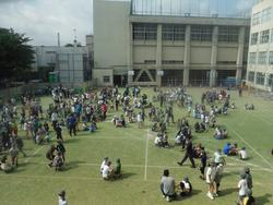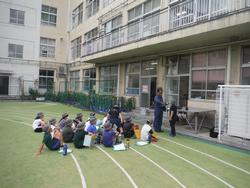 校長の佐藤です。毎年夏休み前に、水泳の授業で着衣水泳体験を行っています。以前は5年生でのみ行っていたそうですが、ここ数年は全学年で体験をしてもらっています。毎年、水の事故で何人もの方が命を失っています。着衣のまま水に入るととても衣服が重くなる、だからバタバタと泳がずに静かに浮いている、長い時間浮くにはペットボトルなどが有効…。5年生にはこのようなことを体験しながら学習してもらいました。(他学年は着衣で水に入るとどうなるかという体験)体験したから大丈夫ということではないので、事故が起こらないように楽しんでほしいと思います。午後は2年生に体験をしてもらうはずでしたが、13時30分頃突然学校中の電気が消えました。すぐに職員にブレーカーを確認してもらいましたが、ブレーカーのレベルではなくもっと大もとが切れているとのこと。区教委などに連絡をしましたが少し復旧には時間がかかりそうです。今日も東京は危険な猛暑。教室は暗い上に冷房が切れてどんどん暑くなってきます。このまま学校にいるのは危険と判断し、近隣の獨協中学・高等学校の校長先生にお願いをして、避難をさせてもらうことにしました。ちょうど試験休みで教室が空いていたということで、冷房の効いた教室に児童全員を避難させていただきました。獨協中学・高等学校では、飲料水を提供していただいたり、男子トイレを一部女子トイレに変えていただいたり(獨協中学・高等学校は男子校)急なお願いだったにもかかわらずいろいろと対応していただいたようです。私は学校に残り、連絡をしたりや指示を出したりしていました。熱中症で倒れる人が出なくて本当によかった。学校はいろいろなことが起きますが、皆様のおかげで何とか毎日を過ごしています。1学期はあと2日。無事に終わってほしいな。電気については区教委と対応を検討しています。明日は普通に教育活動を行います。