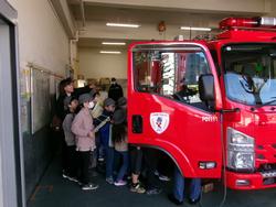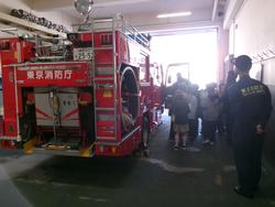 校長の佐藤です。3年生では、各学級ごとに小石川消防署老松出張所の見学をさせていただきました。1月29日は2組、30日は3組、そして今日は3年1組が見学をしました。署内と、車庫に止めてある消防車の見学をするのですが、今日は私たちが到着した直後に緊急指令が入り、消防車が出動してしまいました。管内で急病人が出た対応のようでした。見学は一時中断となりましたが、緊張感のある場面を見せていただくことになりました。その後、2グループに分かれて、残っている署員の方に署内のけんがくをさせていただきました。約50分後に消防車が戻ってきて、消防車の見学もさせていただきました。署員の方の優しい説明を聞き、消防署の様々なことを学びました。