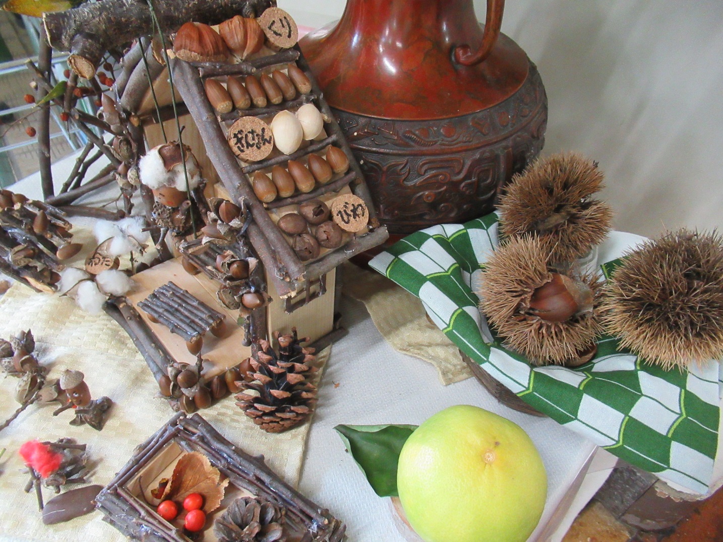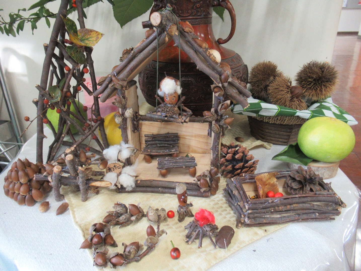 写真は、ほぼ本園の園庭の自然物で出来ています。