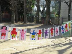 寒くなってきましたが、子どもたちは、お隣の文林中学校校庭で凧あげをしたり、鬼をやっつけたりと、元気いっぱいです。おしゃれパンツの鬼たちは、年中4歳児作です。