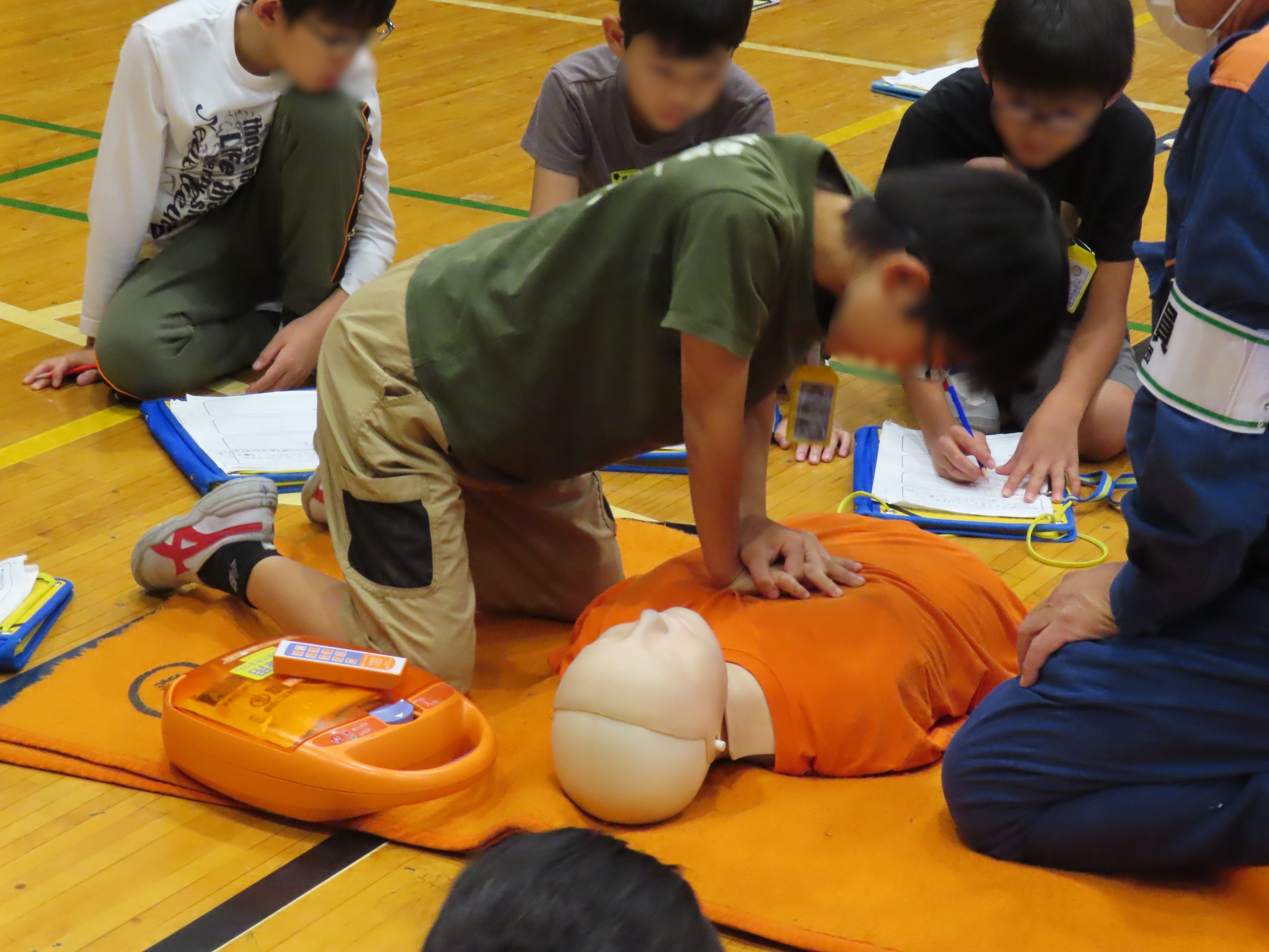 消火器やAEDの体験、非常食を食べたり支給された毛布で寝たりする活動を通して、