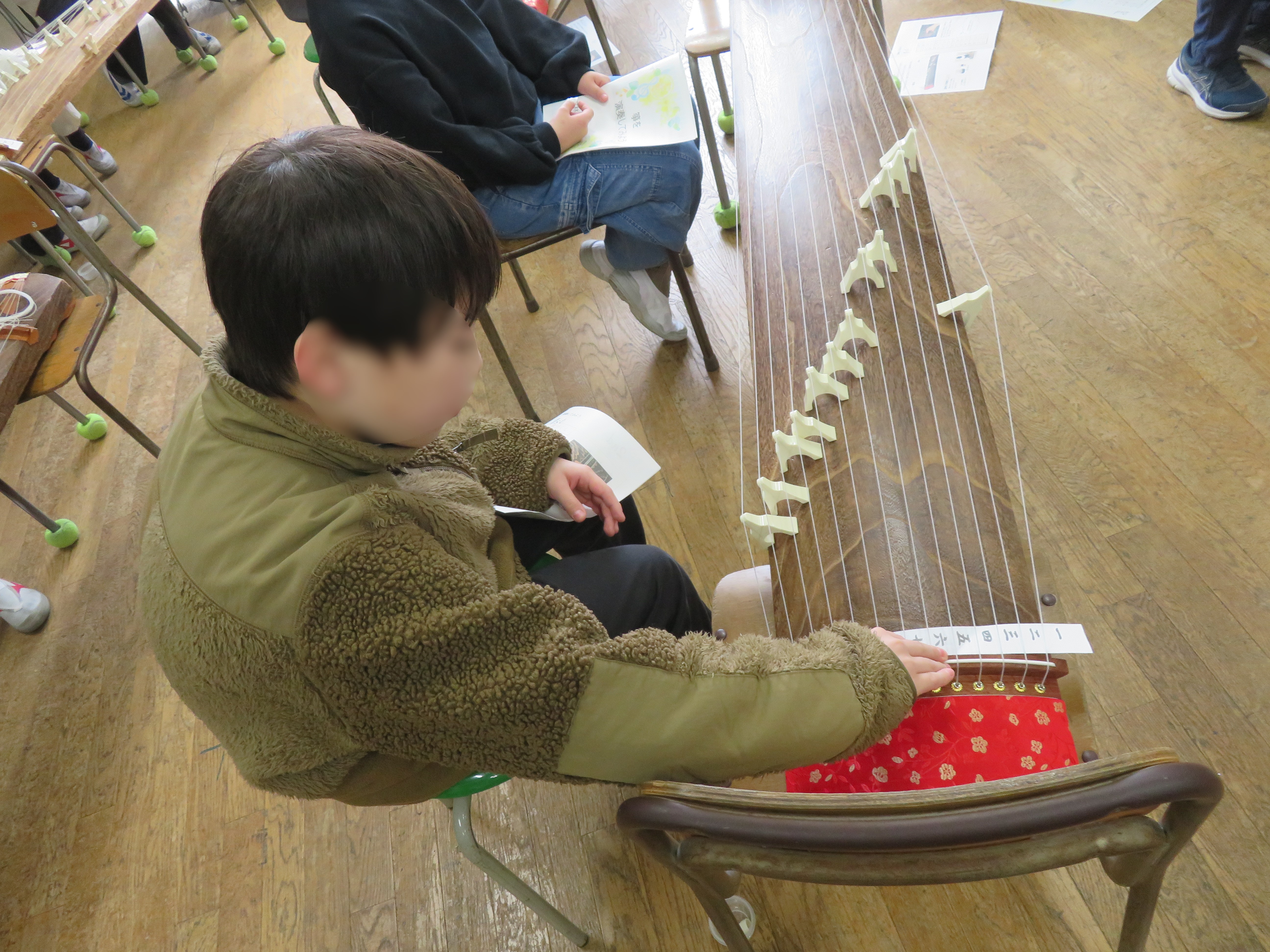 文林中の音楽の先生に指導していただく琴の体験学習を行いました。初めて触れる琴の音色を楽しみながら、「さくら」の曲に挑戦しました。