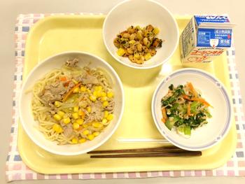今日の献立 ・みそラーメン ・こまツナあえ ・いろいろごまがらめ ・牛乳 |