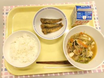 今日の献立 ・ごはん ・めひかりのから揚げ ・肉豆腐 ・牛乳 |