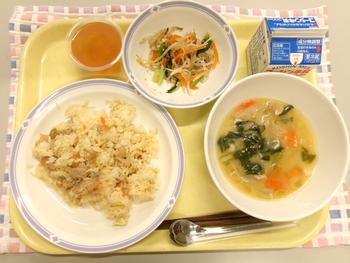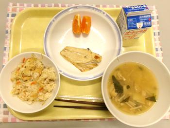 今日の献立 ・切干大根のまぜごはん ・さばの文化干し ・みそ汁 ・みかん(みはや) ・牛乳 |