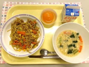 今日の献立 ・ソース焼きそば ・トックスープ ・おかしな生卵 ・牛乳 |