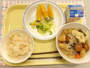 今日の献立 ・茶飯 ・おでん ・浅漬け ・みかん(スイートスプリング) ・牛乳 |