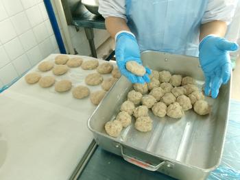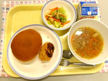 今日の献立 ・丸パン ・おみくじコロッケ(ウインナー・うずらの卵・チーズ) ・フレンチサラダ ・オニオンスープ ・牛乳 |