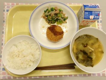 今日の献立 ・ごはん ・メダイのメンチカツ ・青菜とツナのあえもの ・みそ汁 ・牛乳 |