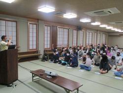 ゆのたに荘に到着し入浴を終えると、お土産の購入タイムになりました。魚沼産のいろいろなお土産に子供たちの目が輝いていました。予算と相談しながらお土産を選ぶのも大切な勉強ですね。また夕食後には観光協会の方が魚沼クイズ学習を行ってくださいました。魚沼にまつわる歴史や文化だけでなく、文京区に関してのクイズもあり、楽しく学ぶことができました。